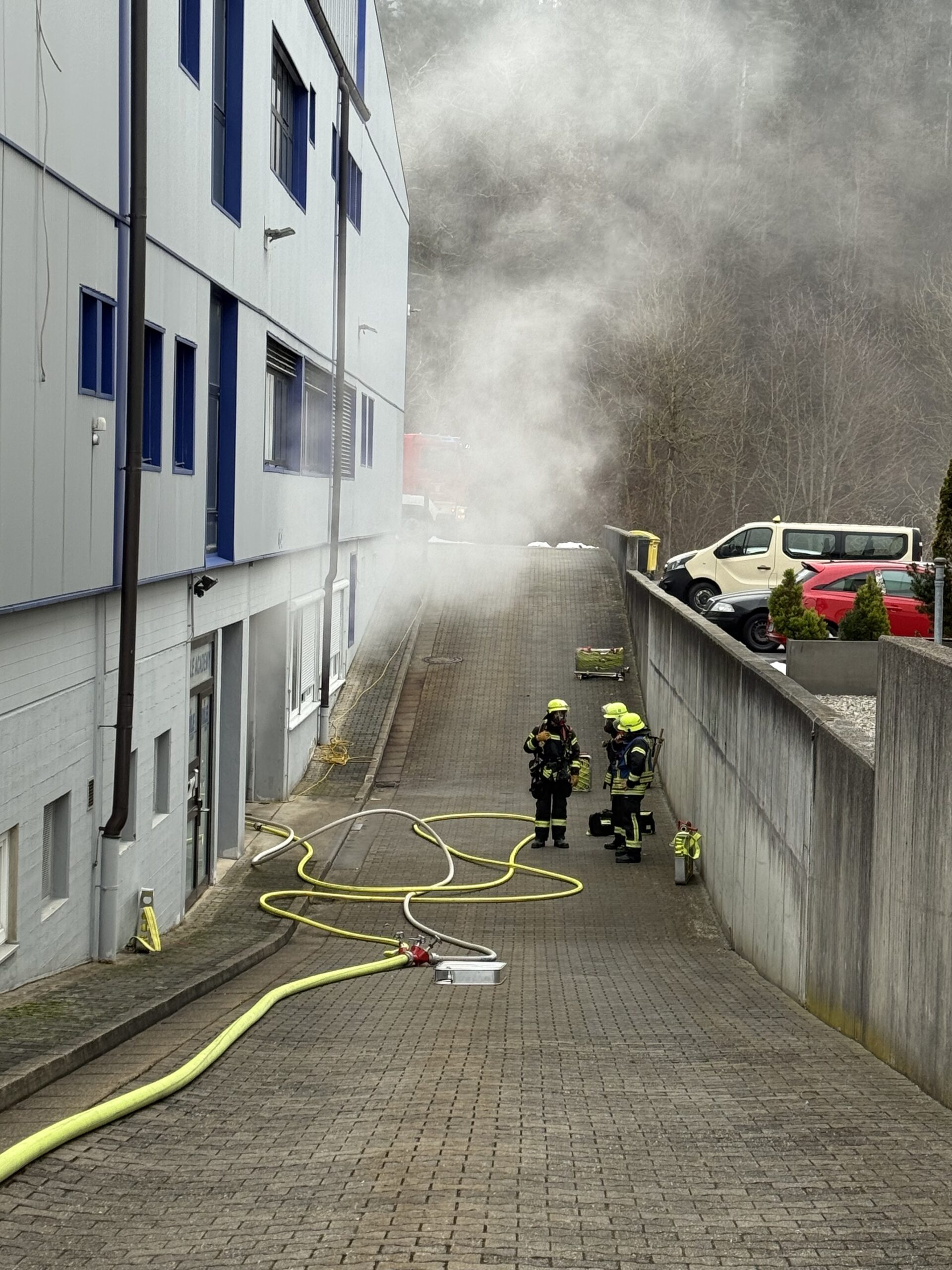 Eine Halle in einem Firmengelände war sehr stark verraucht. Es wurde in einem Druckbehälter flüssiges Harz erhitzt. Der Deckel des Behälters wurde undicht und die Flüssigkeit verteilte sich rundherum um die Anlage. Bei dieser hohen Temperatur rauchte das Harz sehr stark, sodass in der Halle keine Sicht mehr war. Da die Halle in dem Keller des Firmengebäudes ist, gab es wenige Fenster. Die Belüftung des Raumes stellte sich zunächst schwierig dar. Mit einem Überdruckbelüfter wurde der Rauch durch die kleinen Fenster geblasen. Das defekte Geräte wurde über den Notausschalter abgestellt und eine weitere Ausbreitung des Rauches verhindert. Einige Paletten mussten herausgefahren werden, um das Gerät herausschieben zu können. Im Einsatz waren drei Feuerwehren mit 5 Atemschutztrupps. Ein Atemschutzgeräteträger kam mit den Rauchgasen in Kontakt und wurden vom Rettungsdienst behandelt.